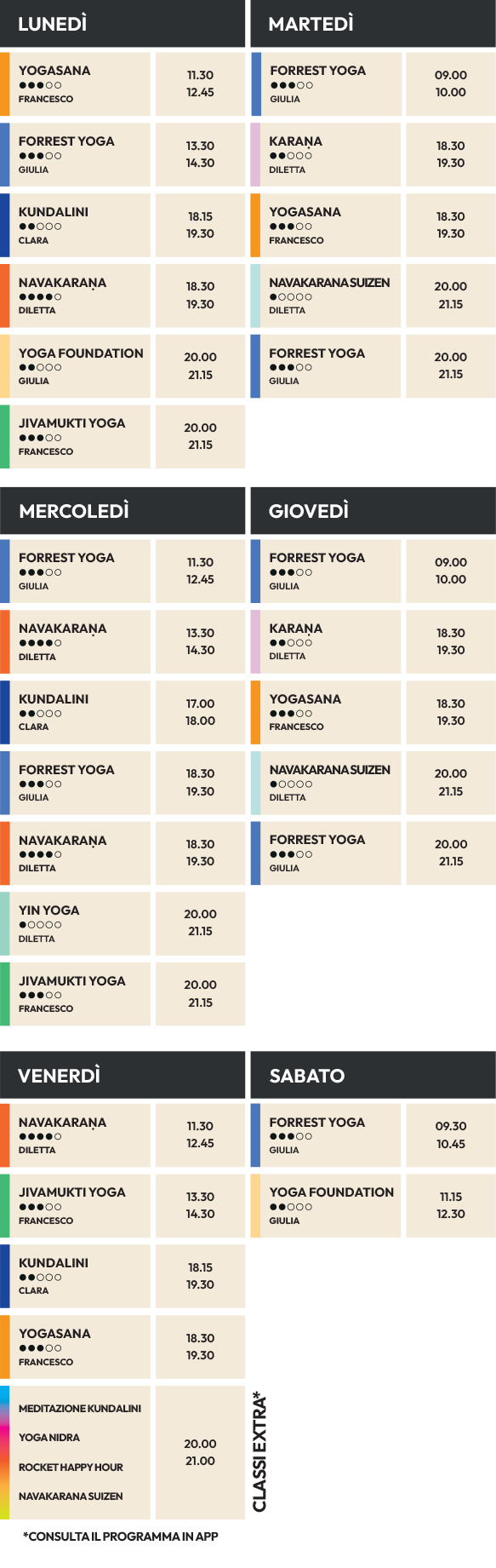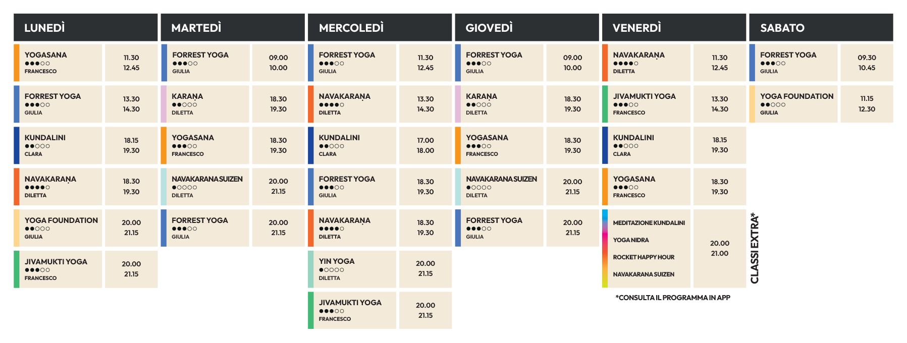 Scegli il corso a cui partecipare, visualizzando il palinsesto completo con tutti i corsi in programma.